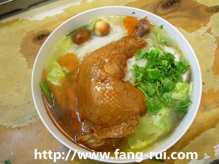 3、倒入水,蓋上鍋蓋開始燉雞塊。我的是燉了兩個(gè)小時(shí),準(zhǔn)備要關(guān)火的時(shí)候開始煮米線。另起一鍋,清水煮開,下米線。