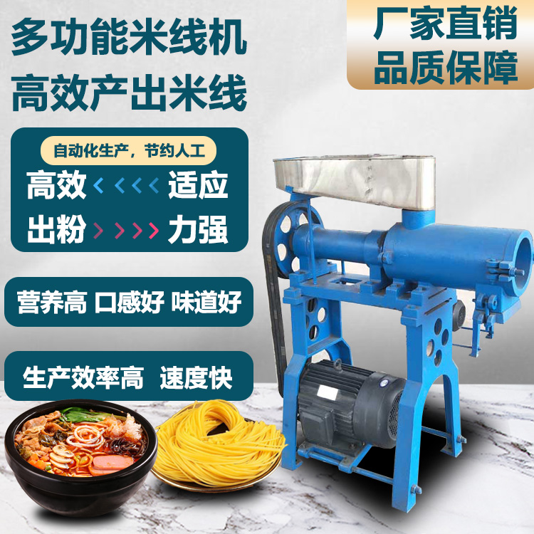 【寶清全自動米粉機】方銳機械生產的自熟米線機功能多樣,不僅僅是只能做米線還能做年糕,是以大米,玉米,小米,等糧食為原料,原料無需粉碎,蒸炊,經清水浸泡6-24小時后,連米帶水直接投入本機加工,瞬間就可出來熱氣騰騰的熟米線,換上不同的模具,還可生產出不同形狀的食品,例如:年糕、粉絲、米粉等等。