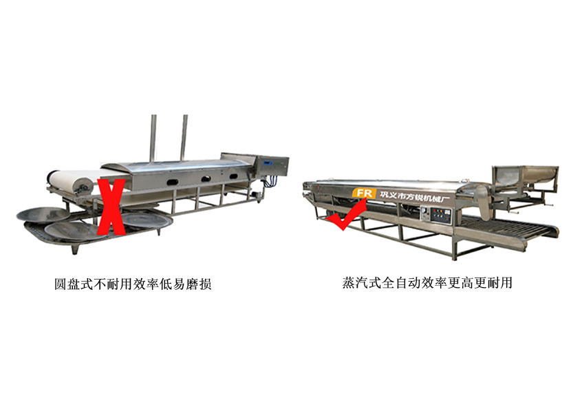 通過以上蒸汽式全自動涼皮機和老式涼皮機的對比,我們不難發現為什么現在用戶直接選擇蒸汽式全自動涼皮機的原因了吧,較關鍵的原因是蒸汽式全自動涼皮機效率高,同時更耐用,對于一個涼皮加工的用戶誰會選擇一個價位高而且使用效果差的產品呢,所以這兩大優勢正是眾多涼皮加工用戶選擇蒸汽式全自動涼皮機的原因了。