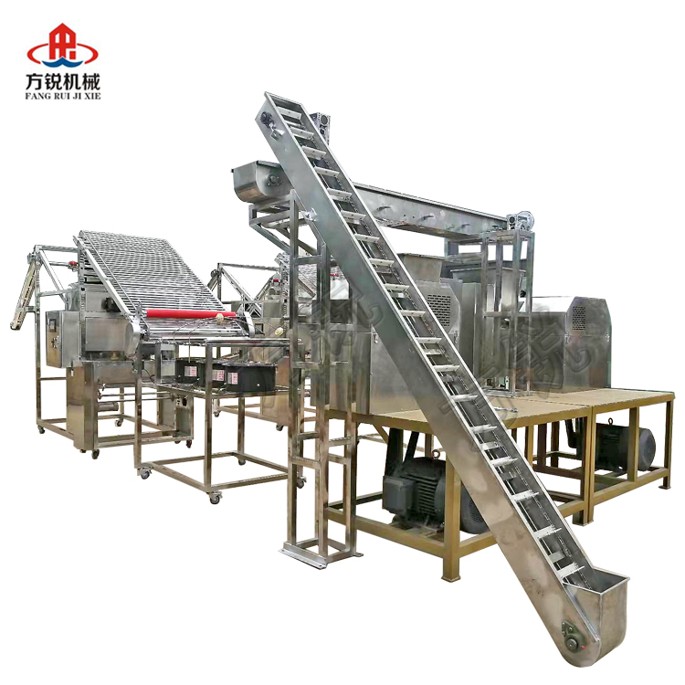 方銳牌大型商用米線機(jī),設(shè)有自動(dòng)溫控裝置,整個(gè)生產(chǎn)過程設(shè)備均在恒溫狀態(tài)下運(yùn)行,生產(chǎn)時(shí)大米不需粉碎磨面,只要將大米浸泡洗凈入機(jī)即可生產(chǎn),自動(dòng)化程度高,操作簡單,一人即可生產(chǎn),自動(dòng)加料,一次自熟成型。米線機(jī)可生產(chǎn)米粉、米線、桂林米粉、過橋米粉、年糕等產(chǎn)品。加工食品外包光滑,厚薄、粗細(xì)均勻可調(diào),筋軟適度,有彈性,口感柔軟、味道純正。