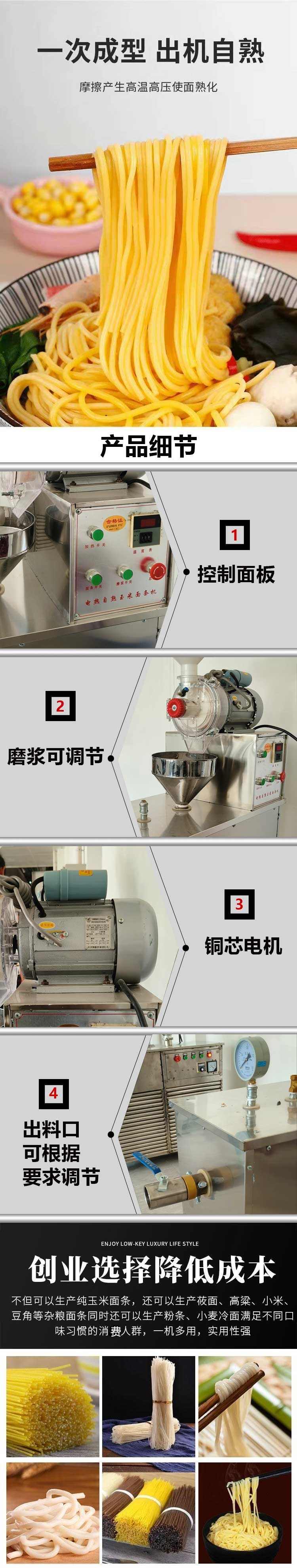 多功能玉米面條機具有設計新穎、結構合理、造型美觀、操作簡單、清理維修方便、接通電源即可生產(chǎn)等特點。該機主要用于生產(chǎn)玉米為原料的內(nèi)熟面條,還能生產(chǎn)各種面條,麻辣條,牛筋面以及米線等。
